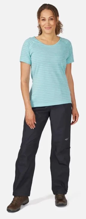 Rab Downpour Eco Womens Pants: jsou kombinací nízké hmotnosti a odolnosti. Jsou ultralehké a velmi dobře sbalitelné nepromokavé kalhoty. Jsou určené jako nouzové, kdy při změně počasí si je přetáhnete přes obyčejné kalhoty nebo přes kraťasy.