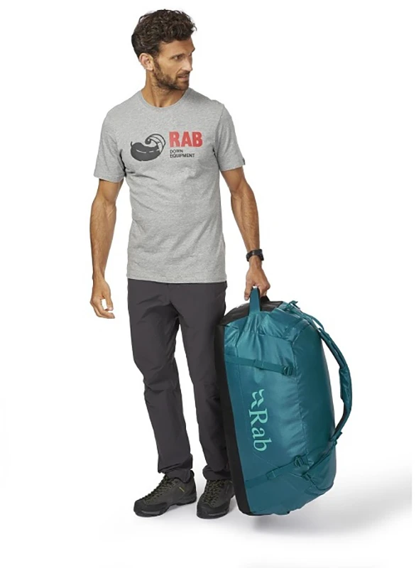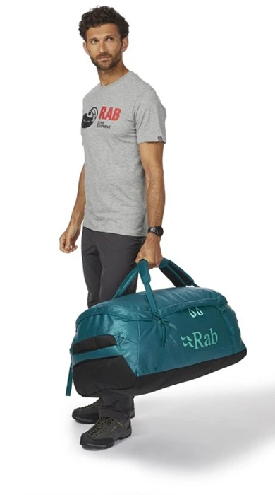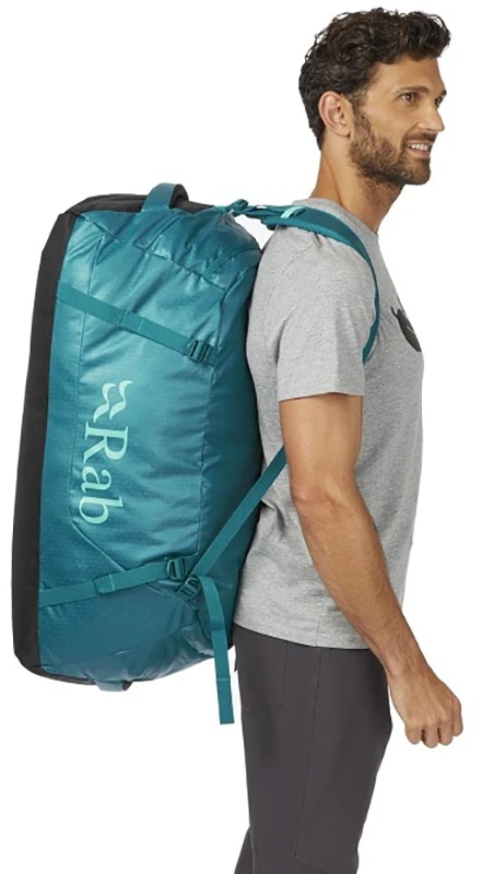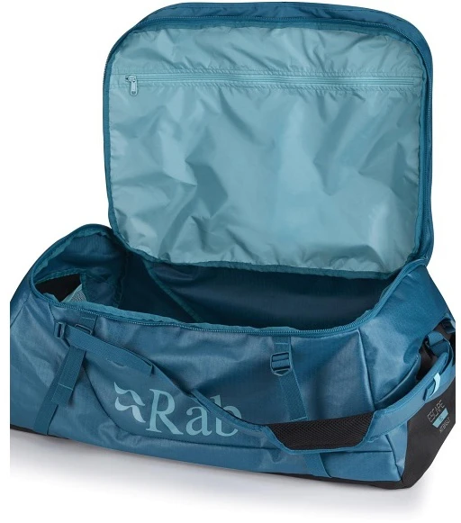 Rab Escape Kit Bag LT 70 - cestovní taška, která se dá složit do malého balíčku. Je vyrobena z odolného materiálu s vodoodpudivou úpravou. Má odnímatelné ramenní popruhy, dá se nosit na zádech jako batoh, nebo jako klasická taška v ruce. Má tři různá madla na nošení. Zipy se dají uzamknout k sobě.