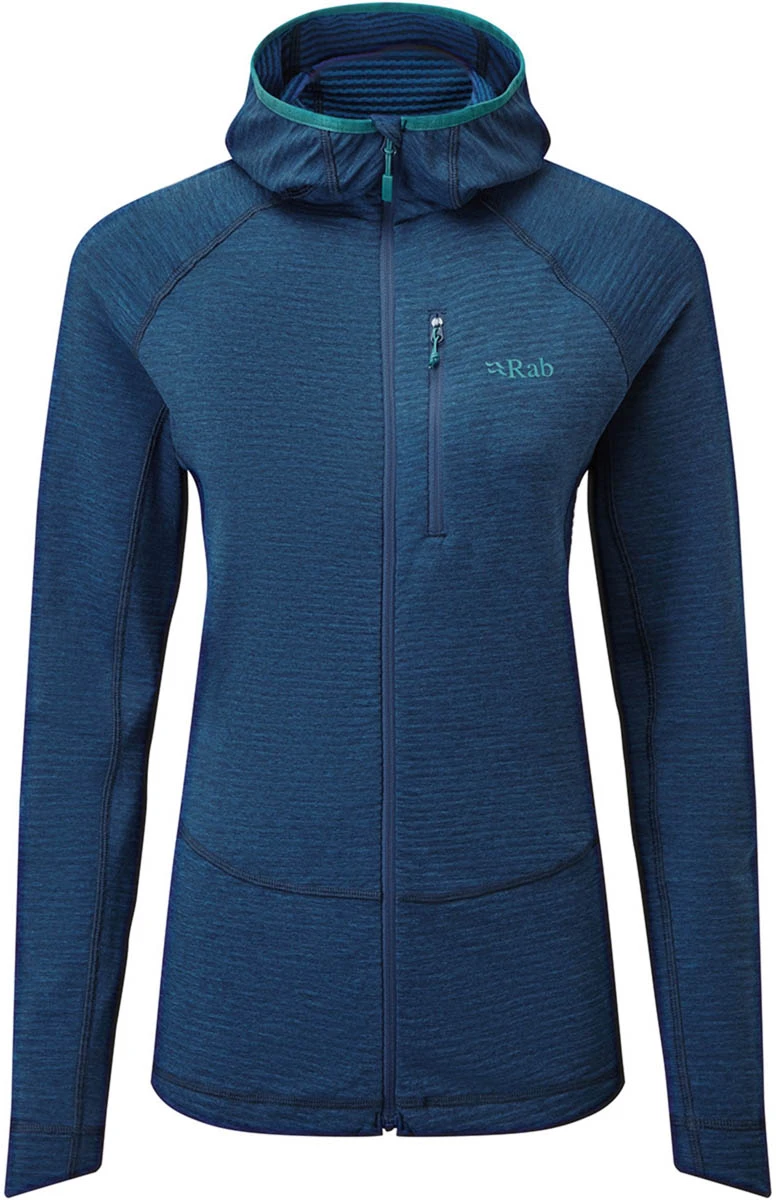 Rab Filamen Hoody Womens je dámská fleesová bunda, která má uvnitř ve fleesu vyfrézovanou strukturu. Díky tomu se v kanálcích drží teplý vzduch, který izoluje, ale logicky nic neváží a nemá objem. Proto je mikina lehká a prodyšná.