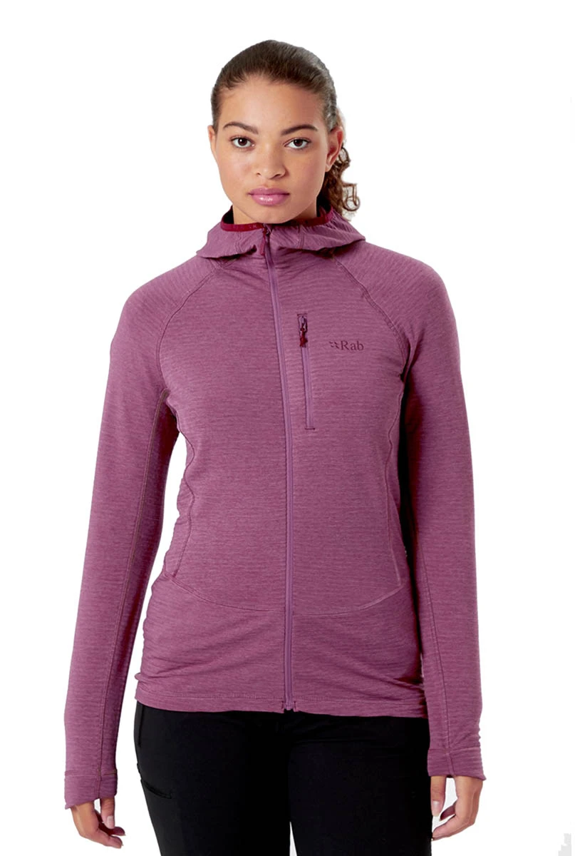 Rab Filament Hoody Womens: je lehká a sbalitelná dámská flísová bunda, která se hodí jako první, ale spíše jako druhá vrstva. Má za úkol vás izolovat od chladu a odvádět pot. Výhodou této fleesové bundy je vysoká prodyšnost, nízká hmotnost a malý objem po sbalení.