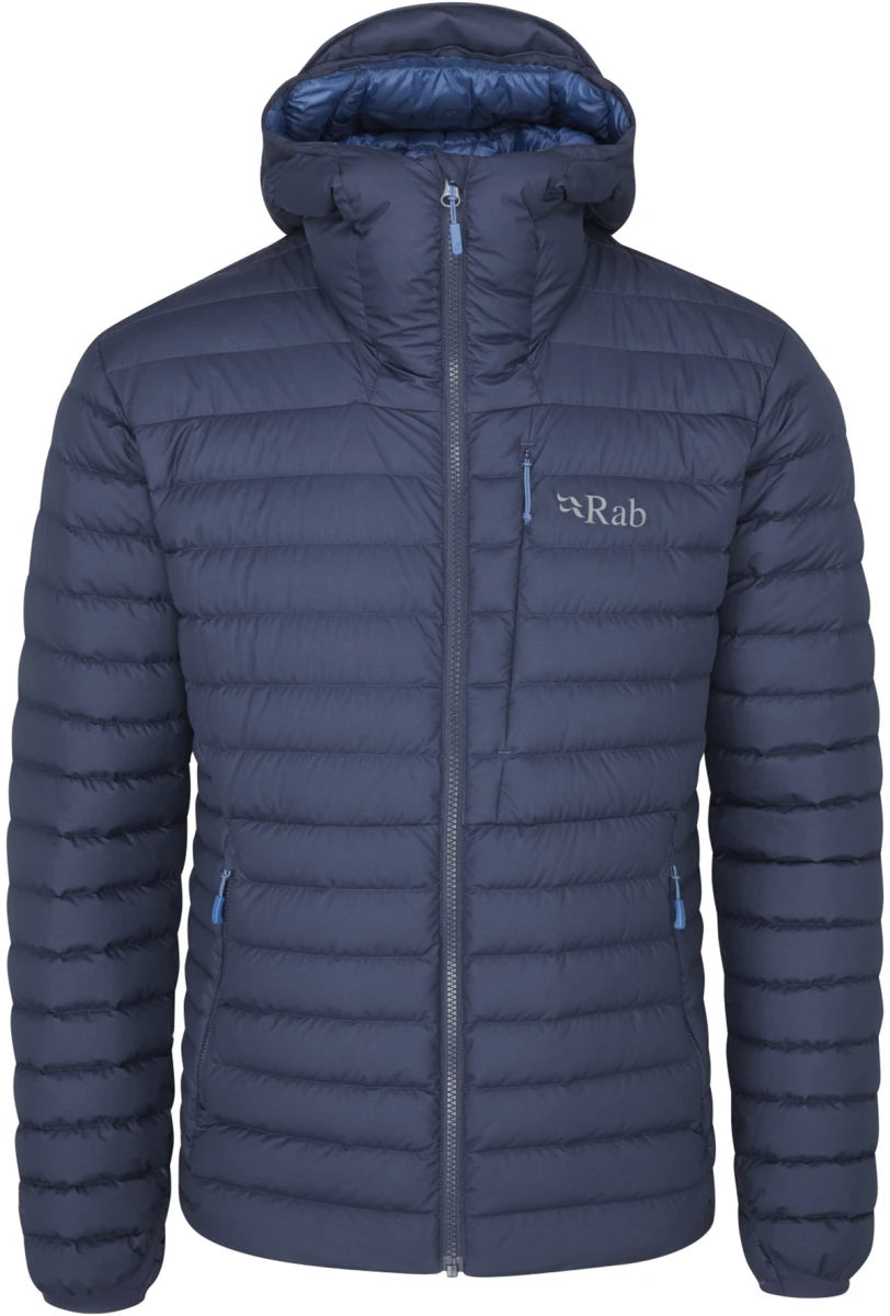 Rab Infinity Microlight Jacket: je lehká a dobře sbalitelná pánská péřová bunda, kterou jde využít jako zateplovačku i jako svrchní bundu. Je to nejlehčí model od Rabu v řadě Infinity (svrchní materiál je membrána).