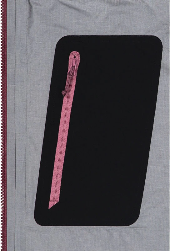 Kapuce je nastavitelná ve třech směrech a jde využít s lyžařskou helmou. Všechny zipy jsou YKK a voděodolné. Má rozměrné odvětrávací zipy v podpaží. Má dvě venkovní náprsní kapsy. Dolní okraj bundy jde stáhnout.