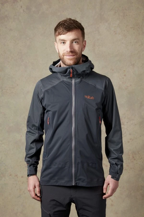 Rab Kinetic Alpine 2.0. Jacket: je zajímavým mixem nízké váhy, odolnosti a vysoké prodyšnosti. Je použita třívrstvá membrána Proflex, která je extrémně prodyšná, ale pružná a měkká. Pro zvýšení odolnosti mají rameny, rukávy, kapuce ještě keramický potisk. Díky tomu je tato bunda velmi univerzální.