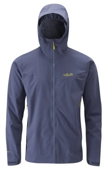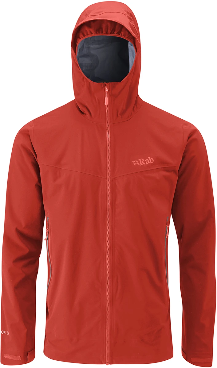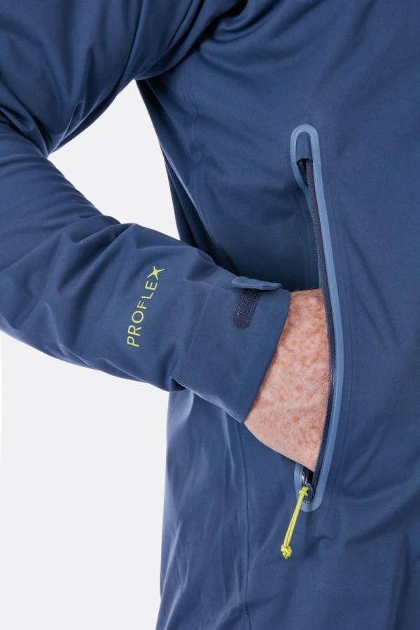 Rab Kinetic Plus Jacket: je velmi lehká a dobře sbalitelná. Je použita třívrstvá membrána Proflex, která je extrémně prodyšná, ale pružná a měkká. Pro zvýšení odolnosti mají rameny, rukávy, kapuce ještě keramický potisk.