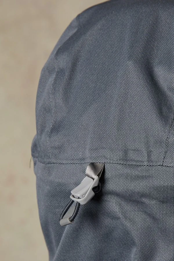 Díky tomu je tato bunda velmi univerzální. Má rozměrné zipy pod pažemi pro odvětrávání. Kapuce je nastavitelná. Všechny zipy jsou voděodolné. Kapuce nejde využít s horolezeckou přilbou, kapsy jsou posazené níže.