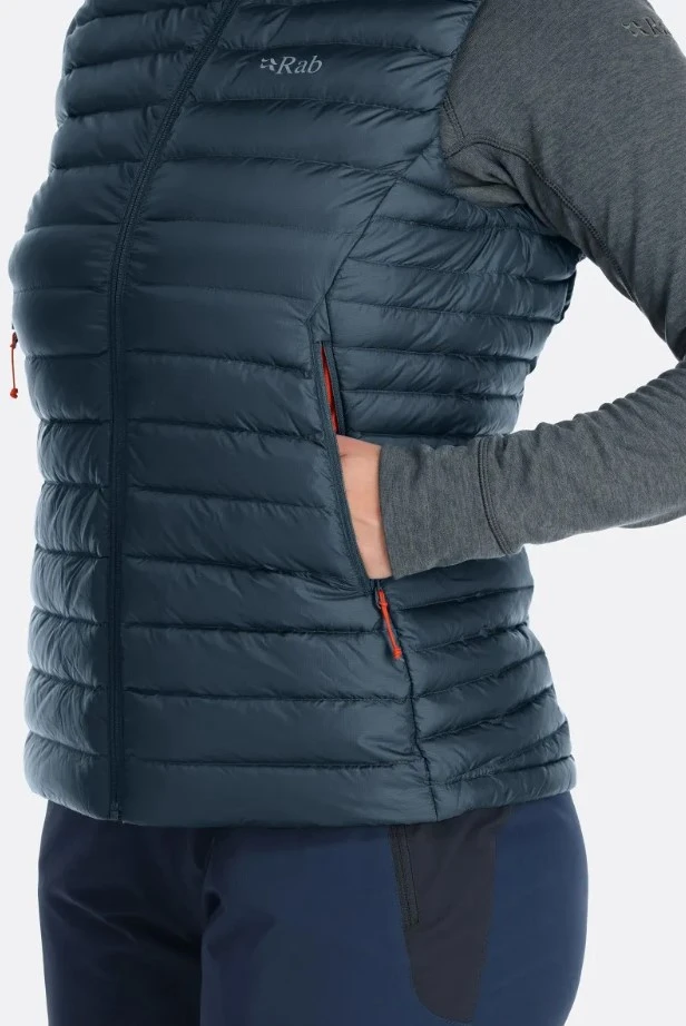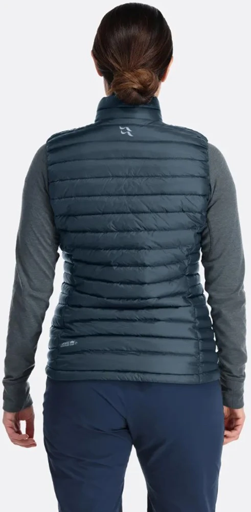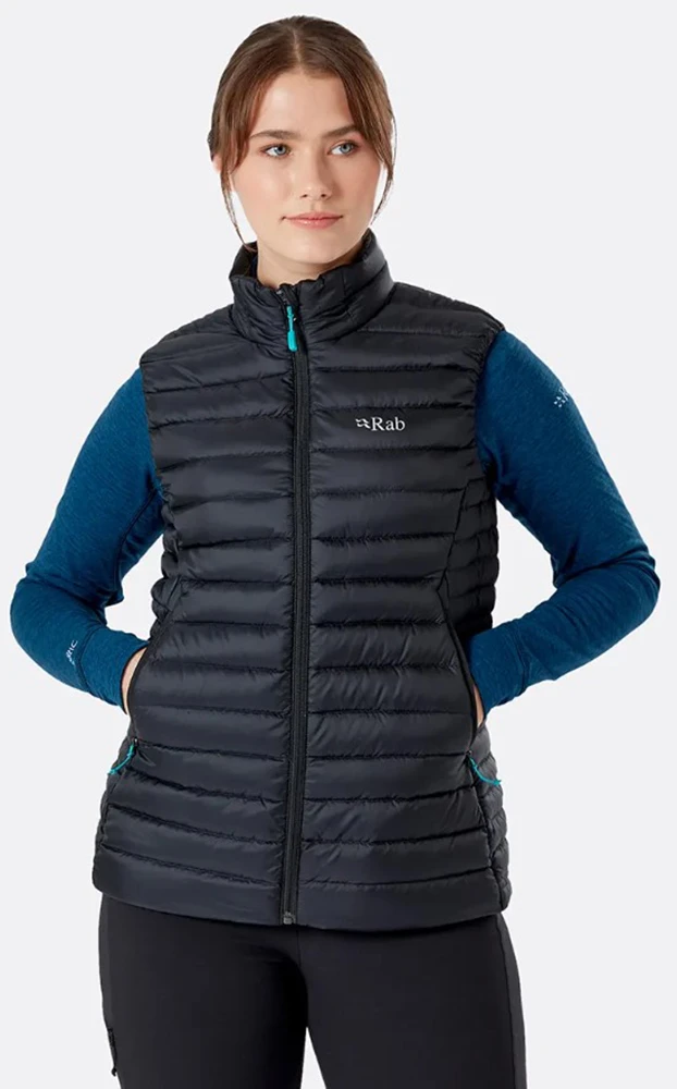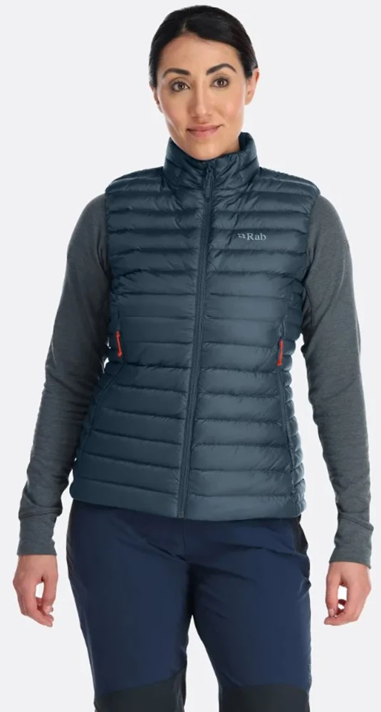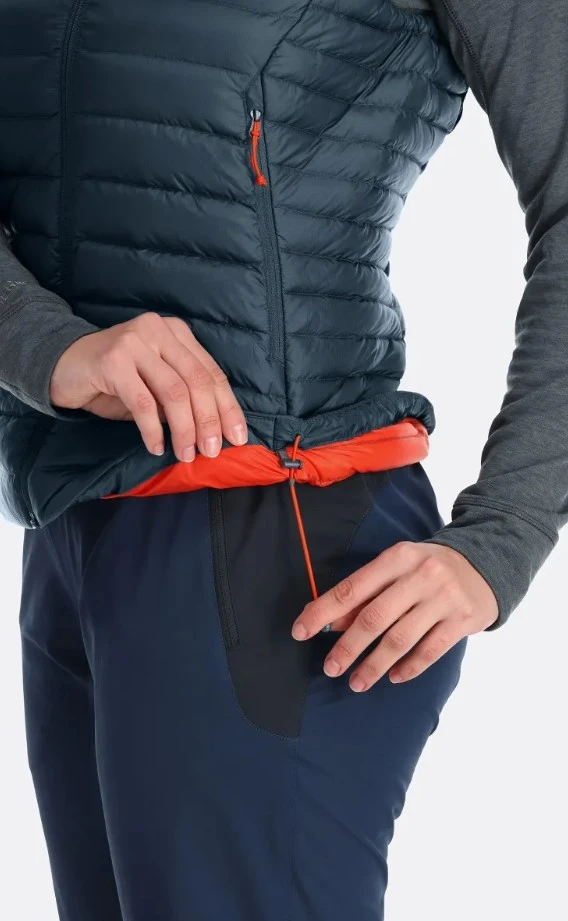 Rab Microlight Vest Women’s: je dámská péřová vesta vyrobena z lehkého materiálu Pertex Quantum, který je pevný, lehký, rychle schne. Vrchní vrstva je opatřena povrchovou úpravou DWR, vesta je plněná prachovým peřím s hydrofobní úpravou od Nikwaxu. Je odolná proti větru a dešti. Vesta se hodí jako svrchní vrstva pro chladný podzim nebo jako zateplovací vrstva na zimu. Vesta se dá snadno sbalit do přiloženého obalu, vejde se tak do každého batohu. Dvě velké kapsy na zip vhodné pro postroj, stahovací spodní lem.