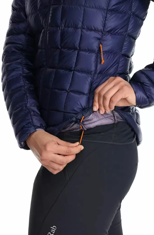 Rab Mythic Alpin Jacket: je jedna z nejlehčích dámských péřových bund od Rabu, je plněná husím peřím s hydrofobní Nikwax úpravou. Výjimečná plnivost 900 cuin už zajistí velmi dobré tepelně-izolační vlastnosti. Hmotnost náplně 60 gramů (ve velikosti M).