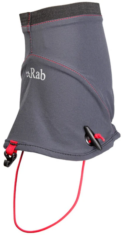 Rab Scree Gaiter: lehké návleky pro běh v terénu, které zabrání padání kamínků, písku a různých nečistot do bot, chrání boty i před vlhkostí z tajícího sněhu. Návleky mají silikonový lem, který je udrží na svém místě, lanko lze velmi snadno odepnout.