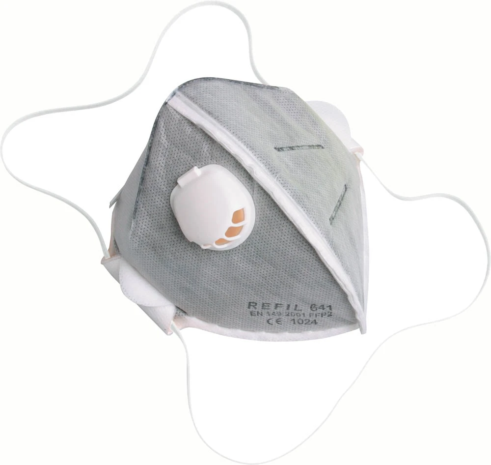 Respirátor Refil 641: má výdechový ventil. Hodí se proti pevným částicím, kapalným aerosolům, parám, plynům, ozonu pod NPK.