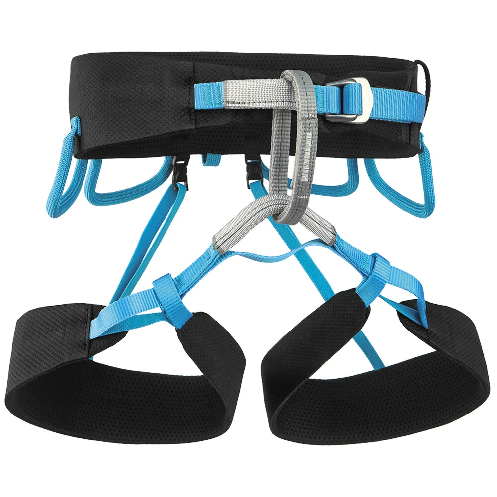 Sedák disponuje 4 materiálovými oky, poutkem na pytlík s magnesiem, odepínací nohavičky.