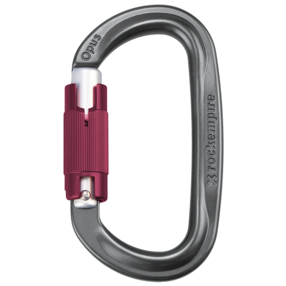 Rock Empire Opus 2T: je oválná šroubovací karabina vhodná pro horolezectví nebo výškové práce s dvoupolohovou (twist) pojistkou proti nechtěném otevření a samozřejmě keylockem.