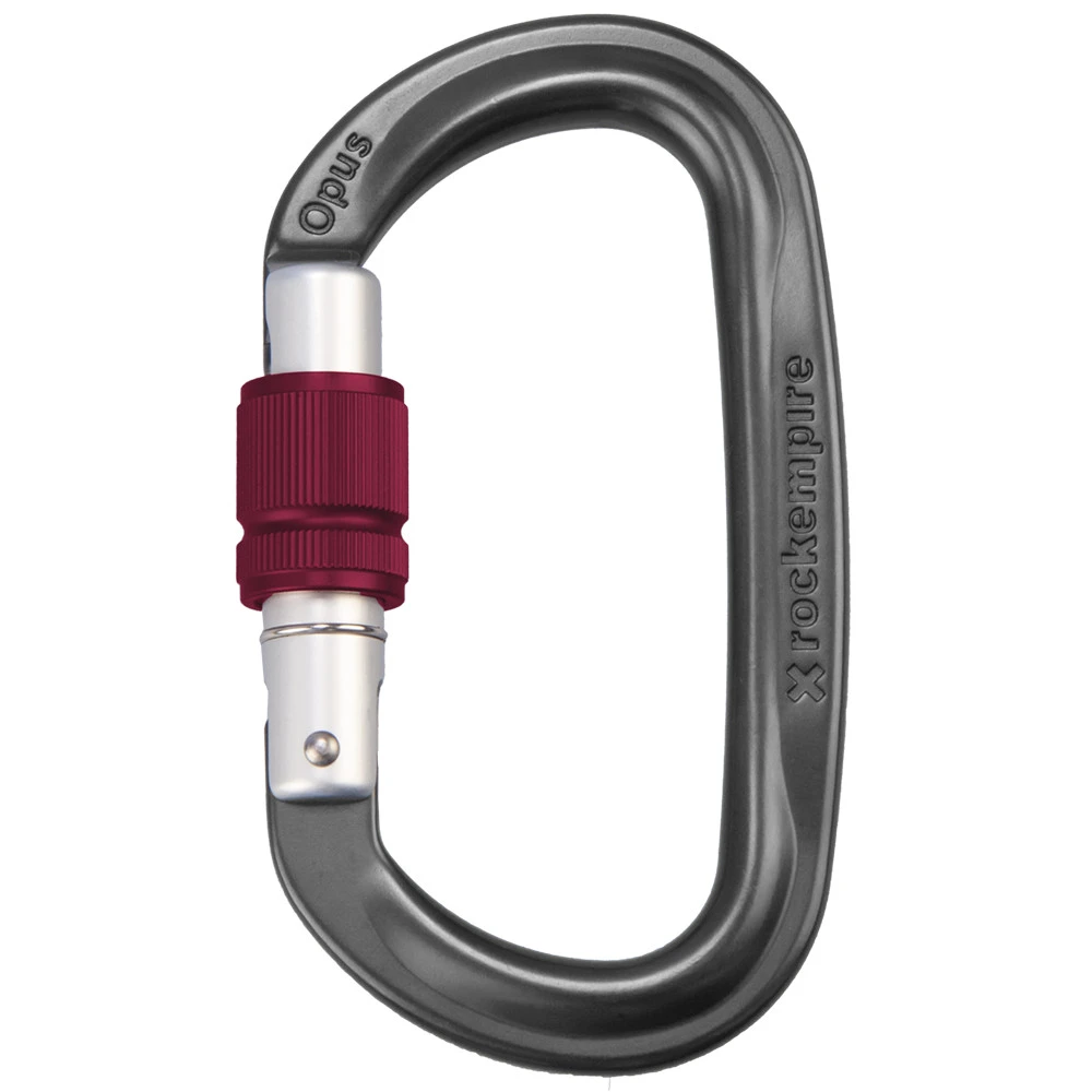 Rock Empire Opus S: je oválná šroubovací karabina vhodná pro horolezectví nebo výškové práce se šroubovací pojistkou proti nechtěném otevření a samozřejmě keylockem.