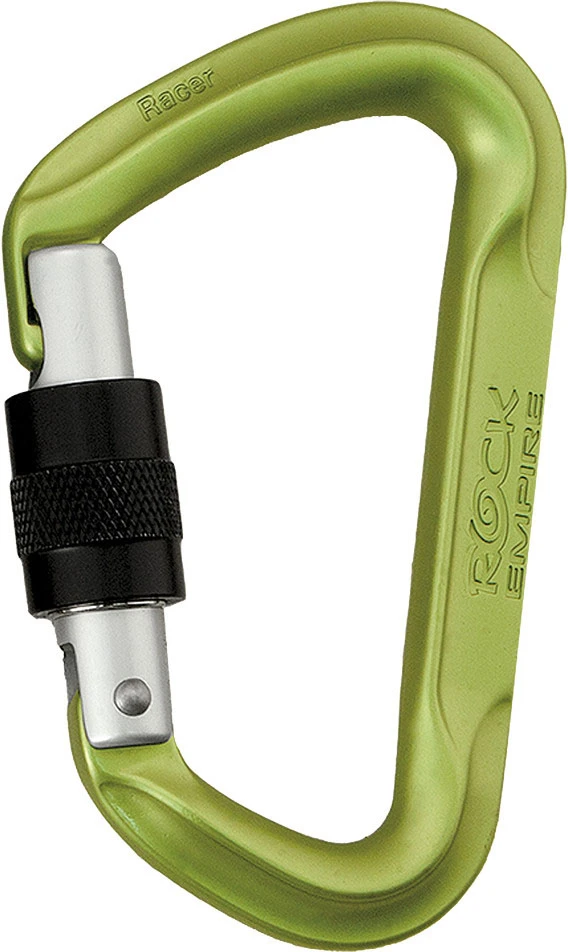 Rock Empire Racer S: je zamykací verze horolezecké karabiny. Má šroubovací pojistku, která znemožňuje nechtěné otevření. Využijete ji na odsedku nebo jako pomocnou karabinu tam, kde potřebujete mít jistotu, že se vám karabina nechtěně nevycvakne.