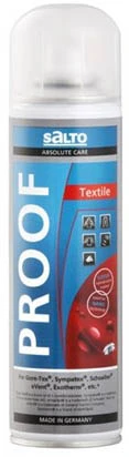Impregnace na membránové oděvy Salto Proof Textile – intenzivní impregnace pro membránové oděvy vyrobené z Goretexu, Gelanotsu, Dermizaxu, Eventu, Blocventu a dalších.