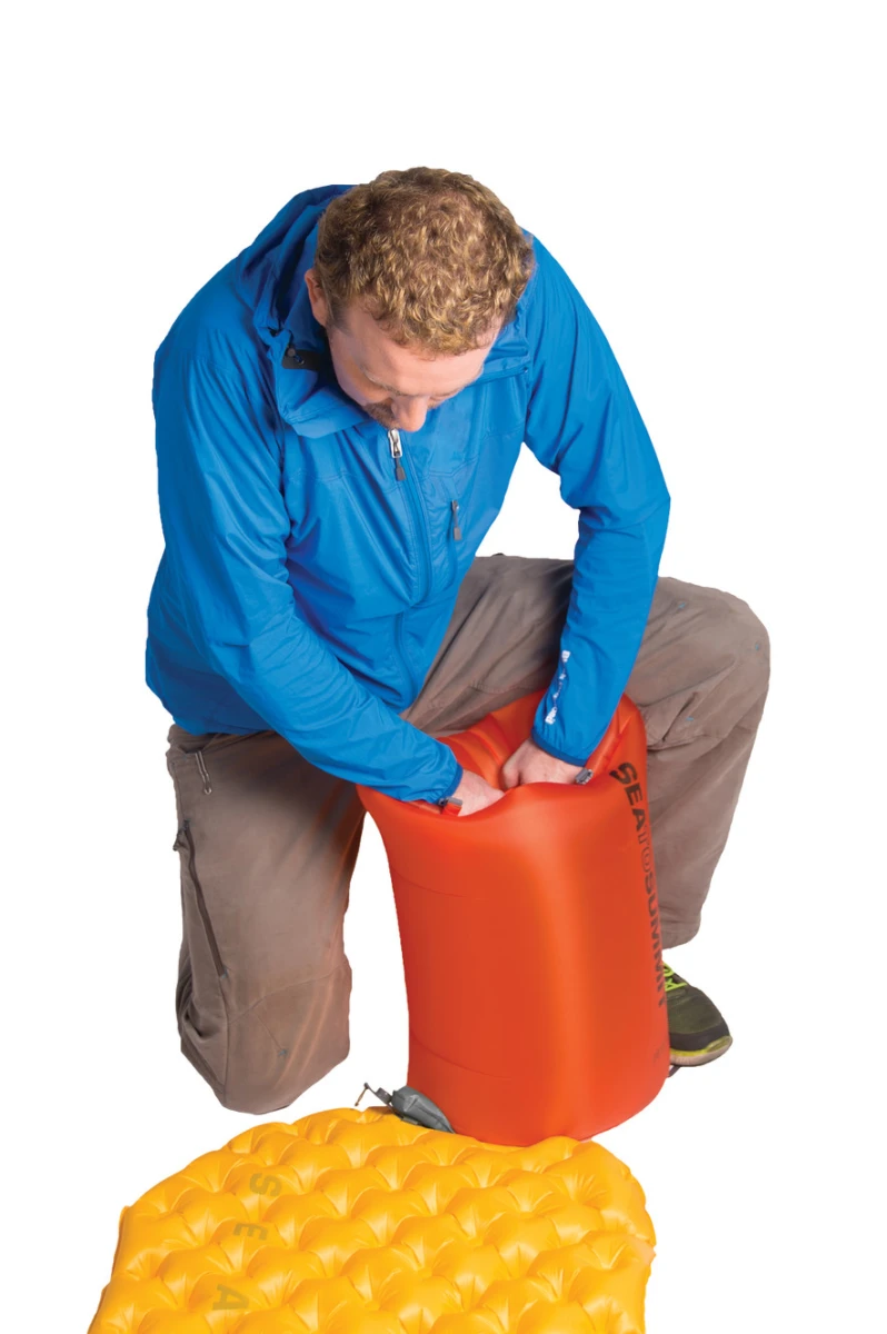 Sea To Summit Airstream Pump Sack - velkoobjemová pumpa na nafukování karimatek. Základem je 20litrový pytel Ultra-Sil® Nano. Airstream ™ lze nafouknout jediným nádechem. Dva až tři cykly z Airstream ™ jsou dostatečné k naplnění našich podložek, což znamená, že jste připraveni ke spánku rychle, s minimální kondenzací dechu v podložce nebo závratěmi při nafouknutí.