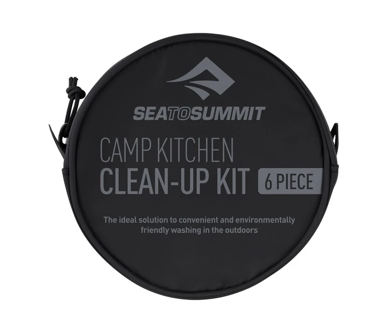 Sea to Summit Camp Kitchen Clean-Up Kit 6 Piece Set: 6-ti dílná sada na mytí nádobí, v přírodě nebo kempu. Snadno ji sbalíte do malého pouzdra (součást balení), a vezmete s sebou do batohu na výlet. Hodí se především tam, kde nemáte dostupný klasický dřez na nádobí.
