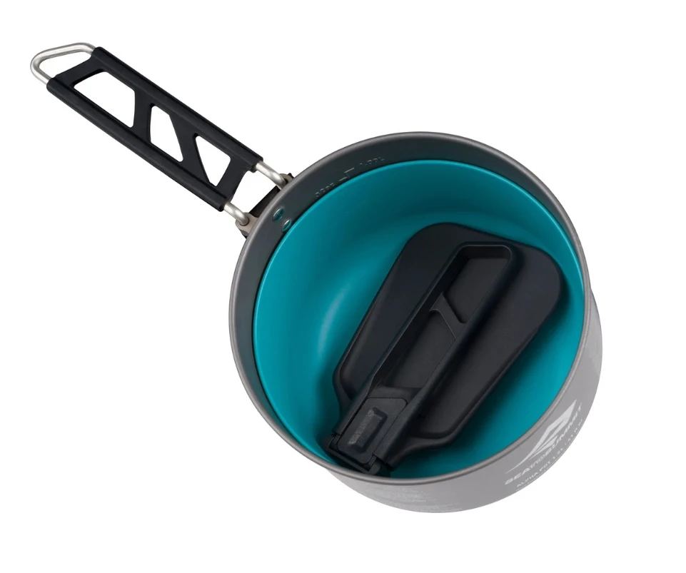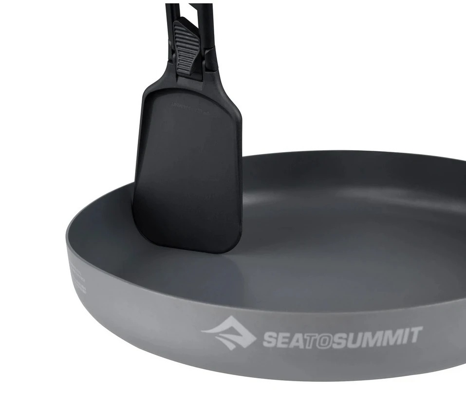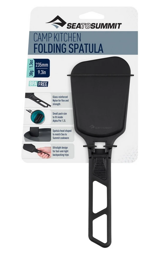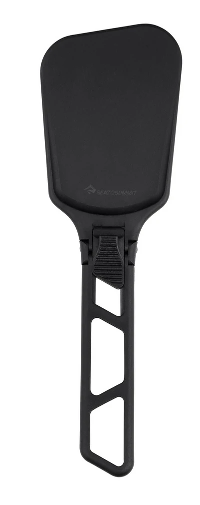 Sea to Summit Camp Kitchen Folding Spatula: Praktická a velice skladná kuchyňská obracečka, je vyrobena z nylonu vyztuženého skelnými vlákny a potravinářského silikonu (bez BPA). Snadno se drží a používá, díky ergonomické rukojeti. Její vrchní část je zesílena tak, abyste z pánve seškrábali i poslední kousek jídla. Obracečku lze jednoduše složit a uložit např. do 1,2 litrových hrnců Alpha a Sigma.