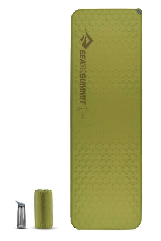 Sea to Summit Camp Mat S.I. Rectangular Large: jedná se o rozšířenou samnafukovací karimatku o tloušťce 3,8 cm. Poskytne vám maximum komfortu. 3,8 cm je nejoblibenější tloušťka, která je ideální poměr komfortu, tepelného odporu a hmotnosti.