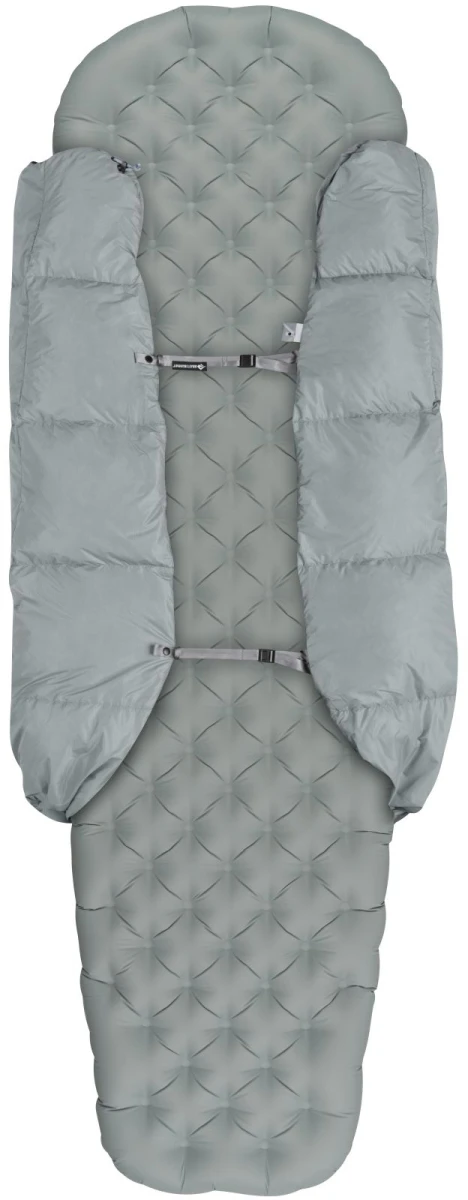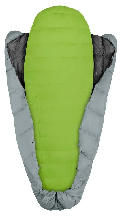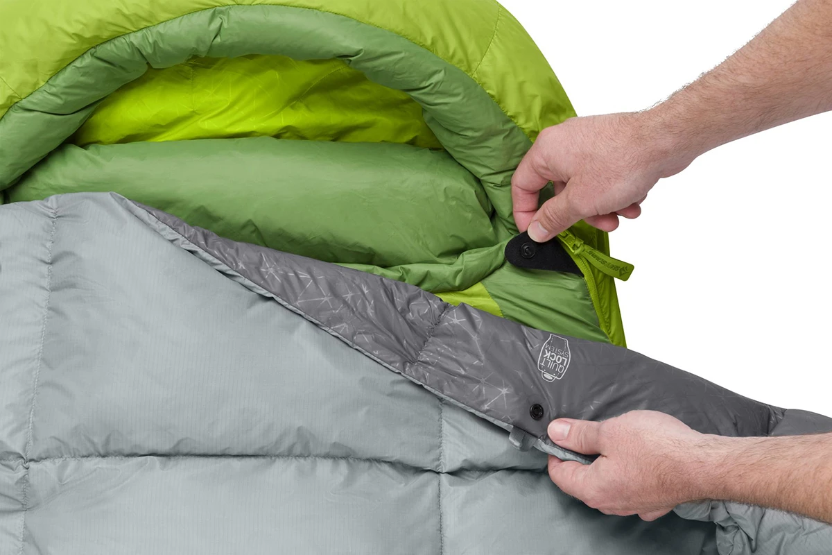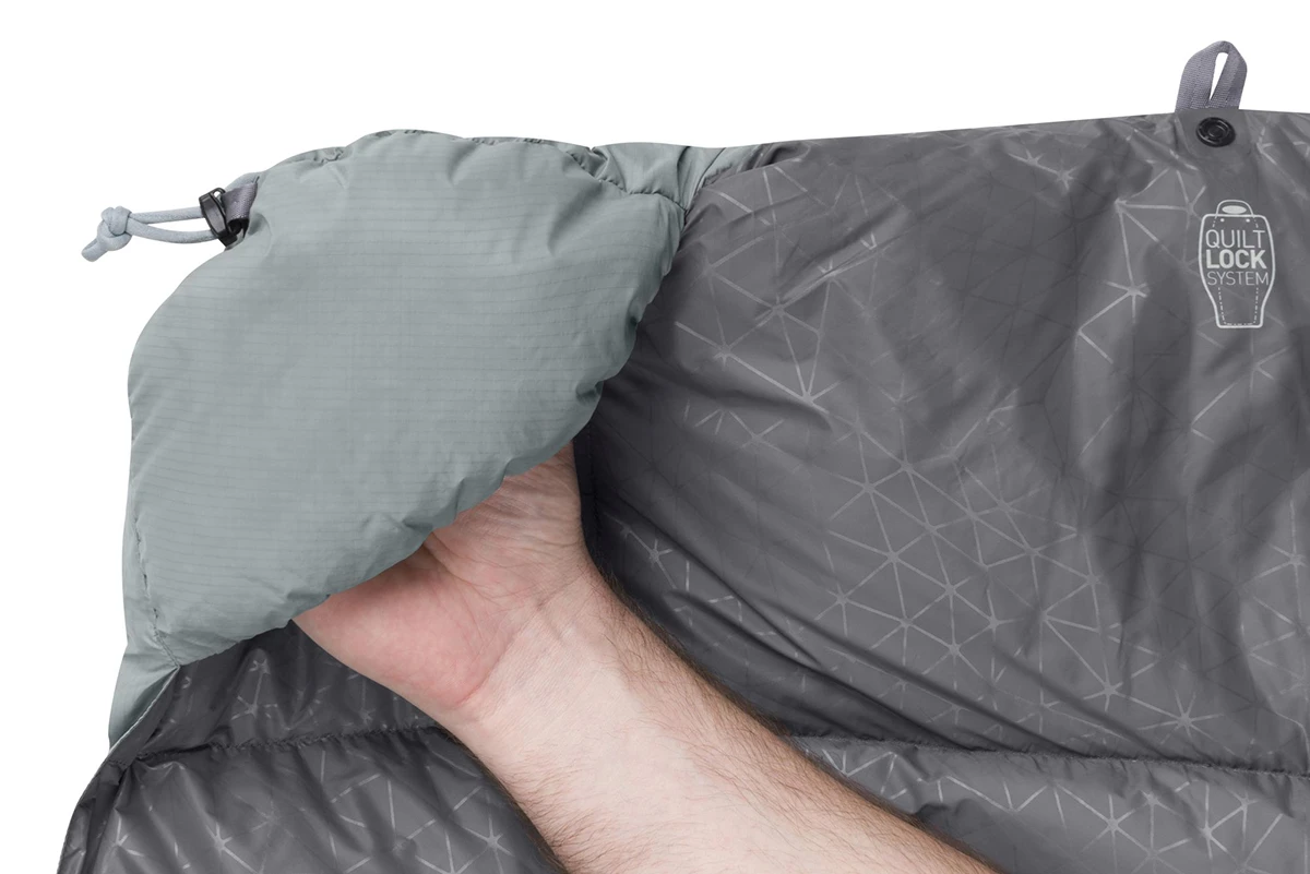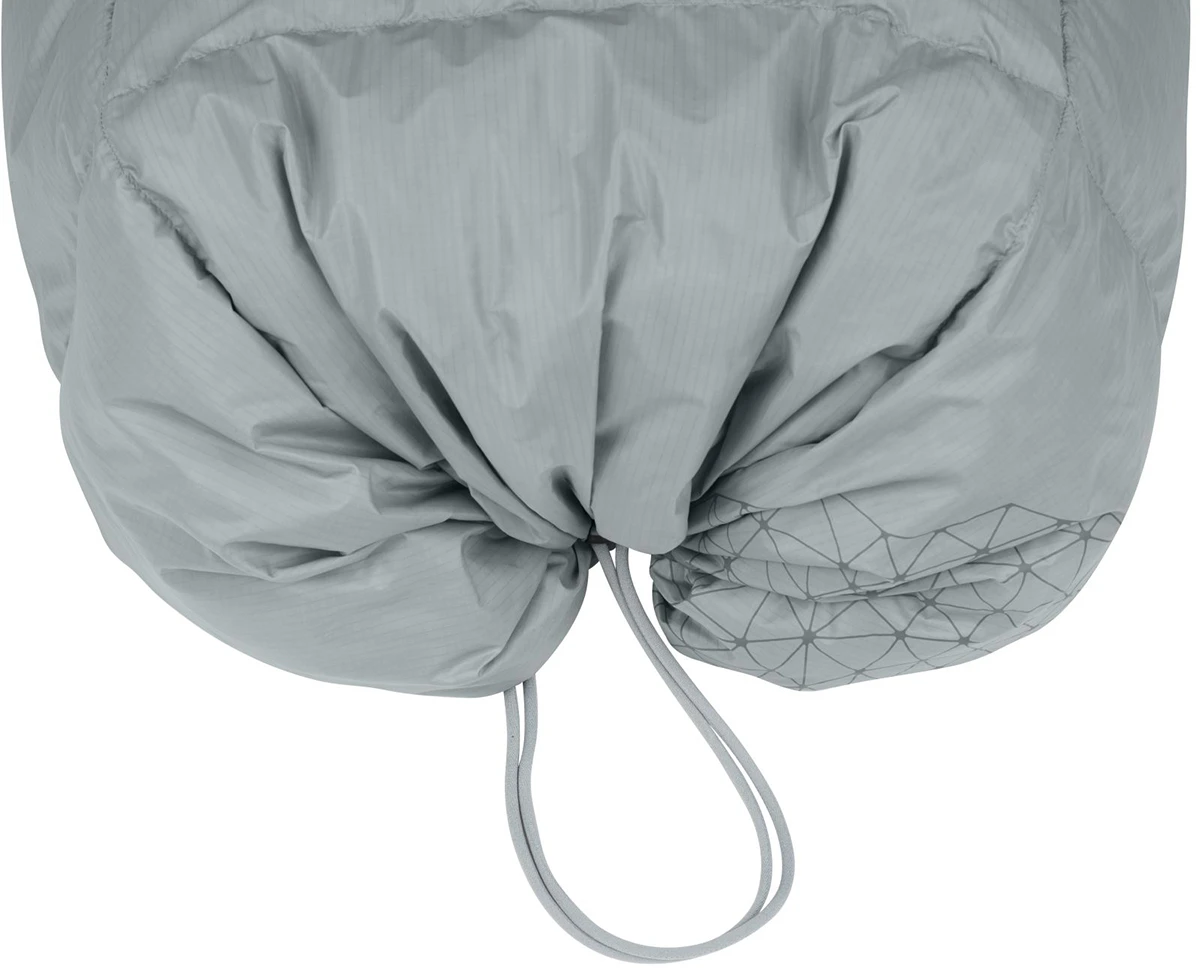 Když teplota naopak klesá lze stahovací šňůru pevně přitáhnout a vytvořit tak kapsu pro nohy, přikrývka navíc disponuje systémem popruhu a patentního knoflíku, který slouží k připevnění karimatky k přikrývce, čímž se minimalizují tepelné ztráty.
