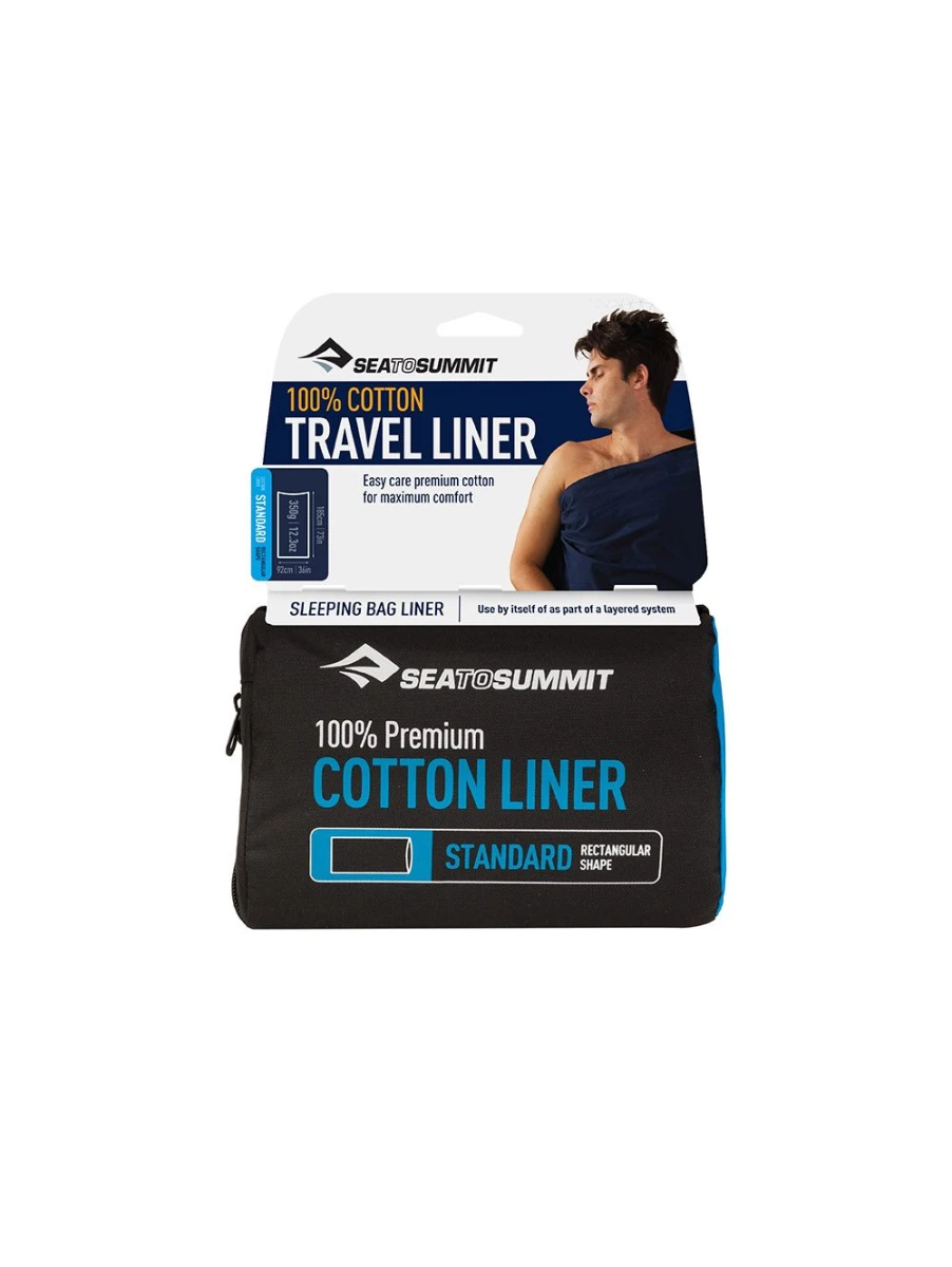 Sea to Summit Cotton Liner - vložka do spacáku ze 100% bavlny. Cenově dostupná volba cestovní vložky. Udrží váš spacák v čistotě a prodlouží tak jeho životnost. Lze také použít jako samostatnou přikrývku v teplém počasí popř.na chatě.