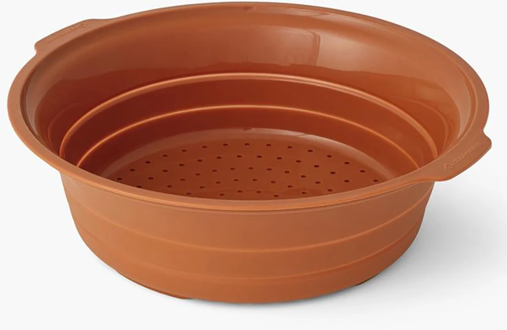Sea to Summit Detour Essentials Camp Kitchen Kit - kempingová kuchyňská sada která se skládá z hrnce cedníku a dvou prkének. Cedník lze využít i jako pařáček na ohřívání.
