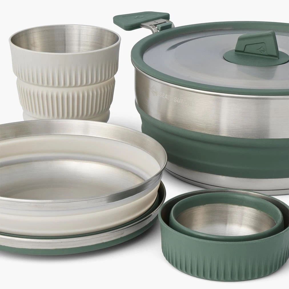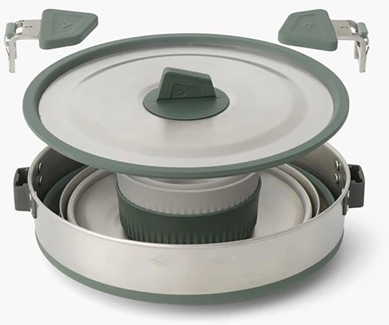 Sea to Summit Detour Stainless Steel One Pot Cook Set - skládací sada nádobí na kempování, nádobí je z nerezové oceli a vše se dá úsporně naskládat do sebe.