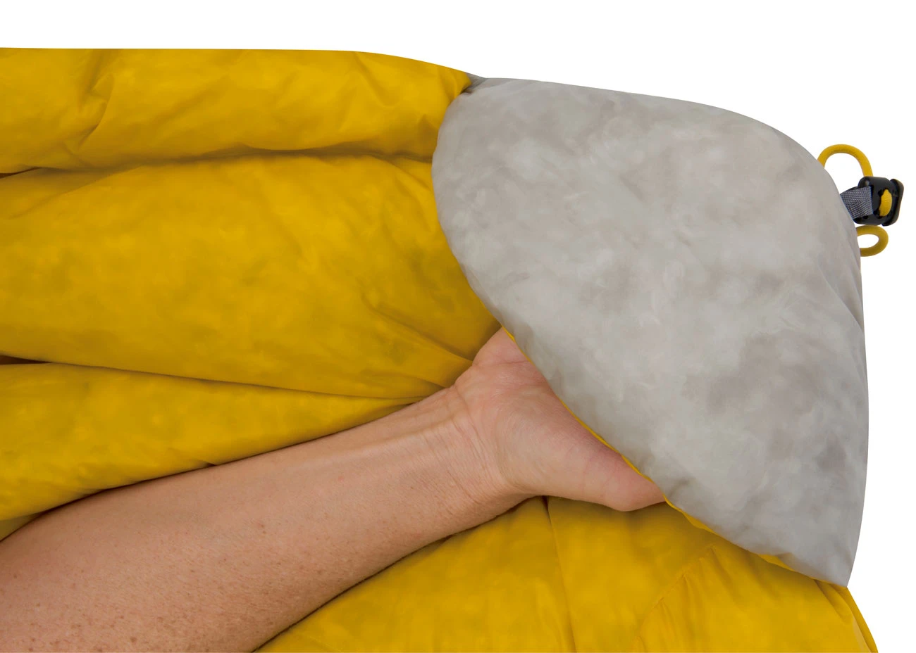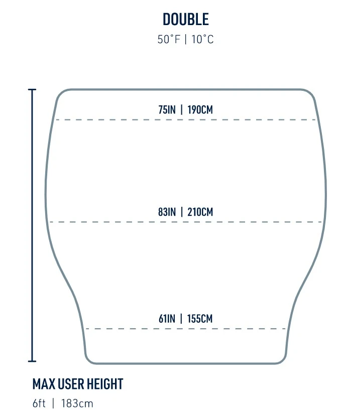 Když teplota naopak klesá lze stahovací šňůru pevně přitáhnout a vytvořit tak kapsu pro nohy, přikrývka navíc disponuje systémem popruhu a patentního knoflíku, který slouží k připevnění karimatky k přikrývce, čímž se minimalizují tepelné ztráty.