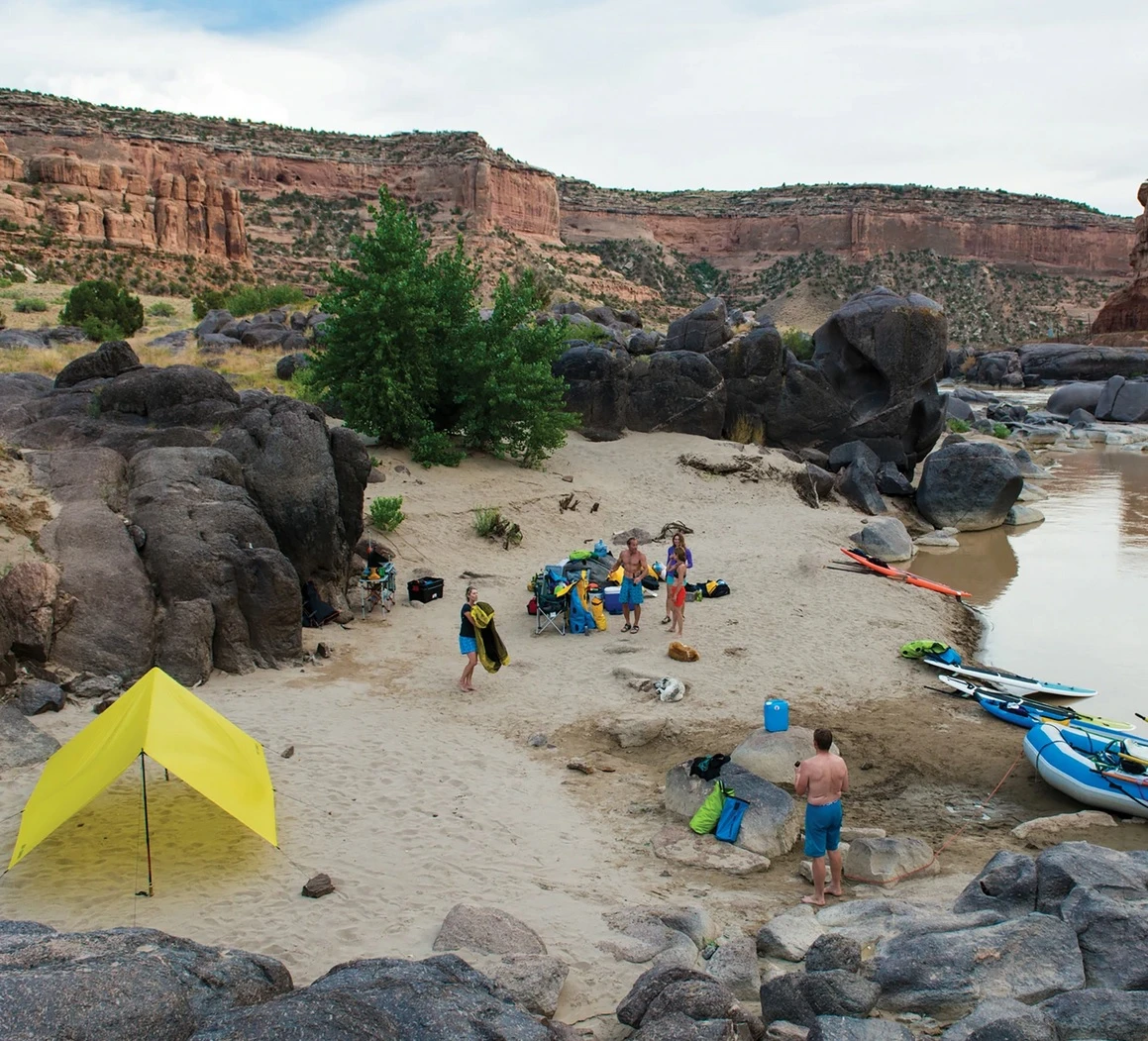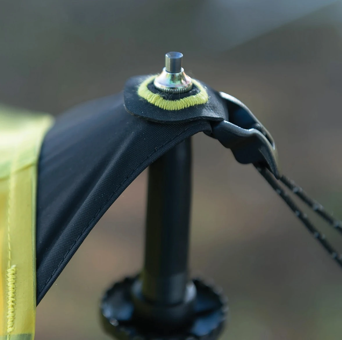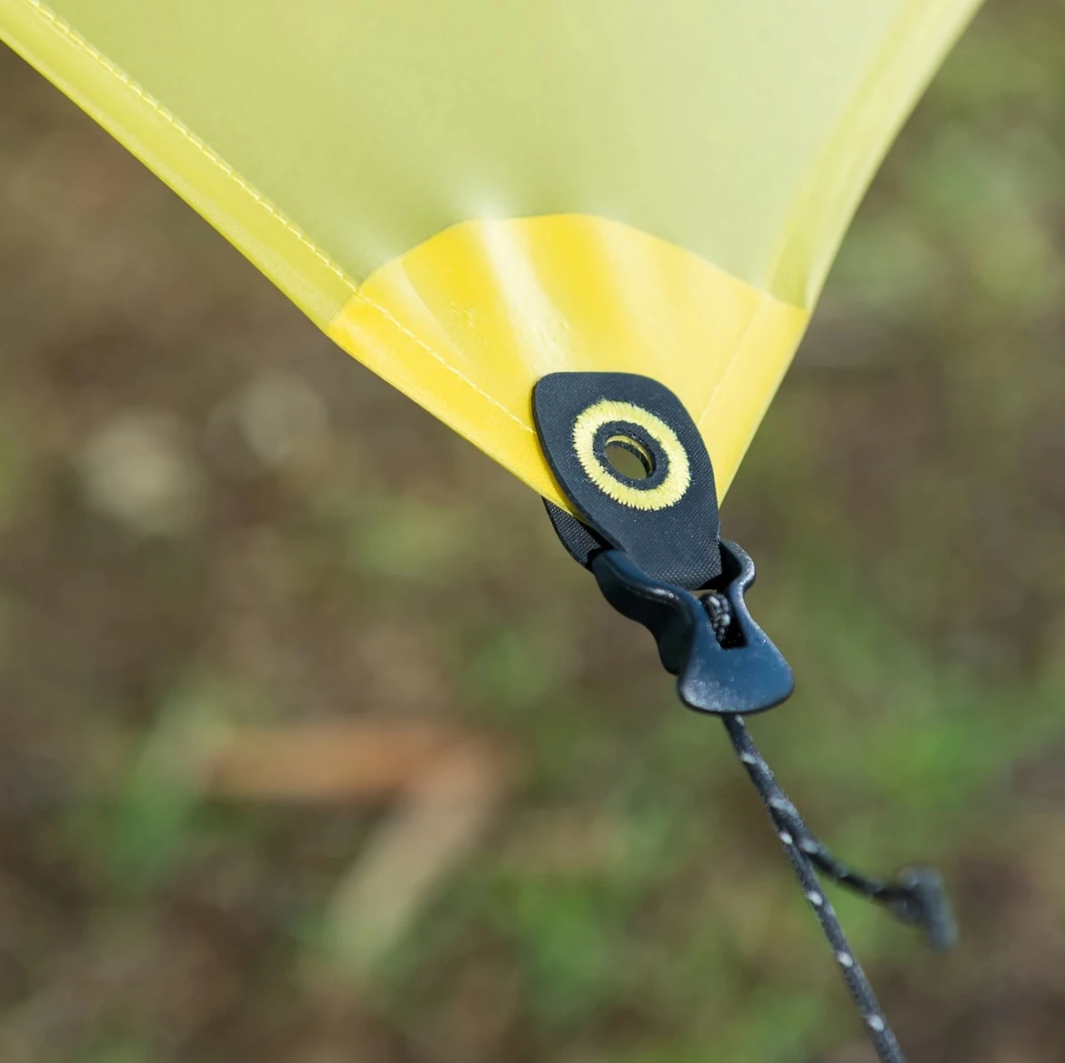 Osm velmi odolných kroužků umístěných v rozích a na bocích slouží pro uchycení napínacími šňůrami třeba ke stromům nebo postavení přístřešku pomocí trekových holí. Může stát samostatně nebo s hamakou.