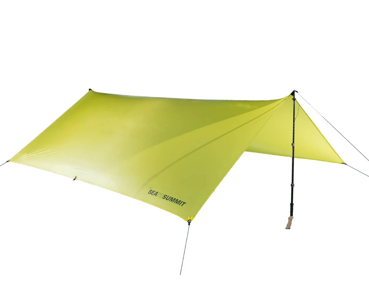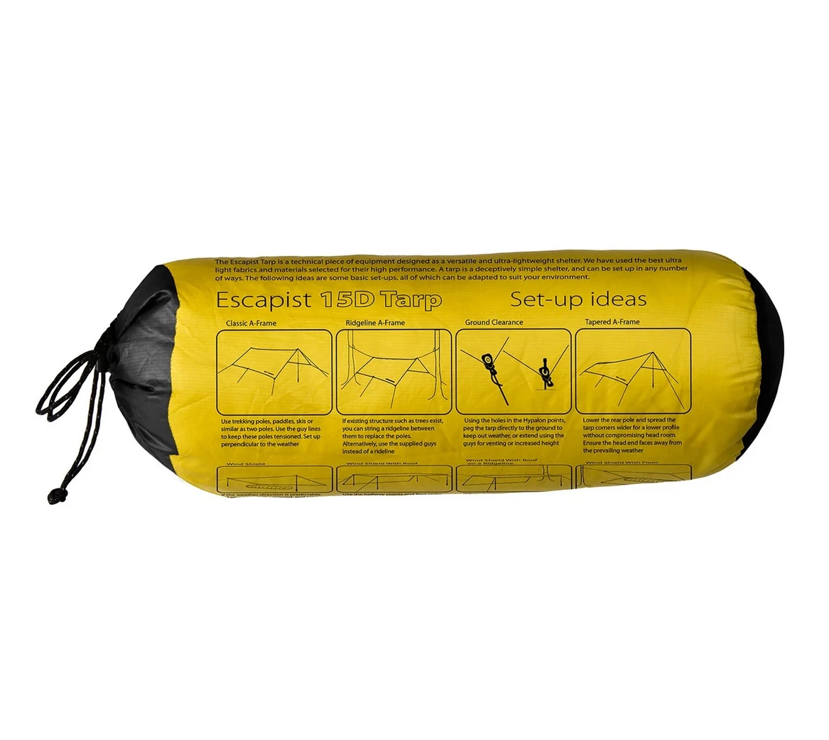 Sea to Summit Escapist 15D Tarp Large 3 x 3 m: je lehký přístřešek (440 g) pro nerušený spánek v přírodě, když vás zastihne nevlídné počasí. Hodí se pro milovníky lehkého vybavení.