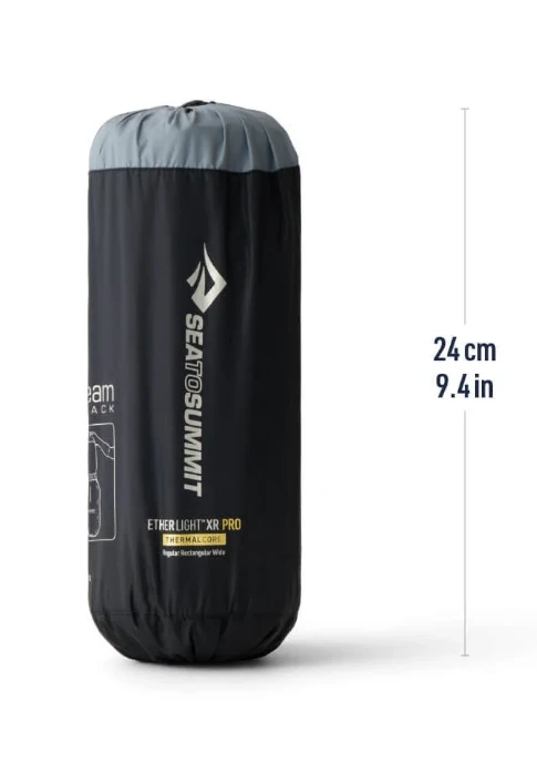 Sea to Summit Ether Light XR Pro Insulated Regular Rectangular Wide - super lehká a pohodlná 10 cm tlustá nafukovací karimatka s izolací pro celoroční tepelný komfort. Díky tloušťce karimatky a jejímu konstrukčnímu řešení v podobě smyčkových přepážek se vám při otáčení boky zaboří hlouběji do matrace, ale nedotknout se země.
