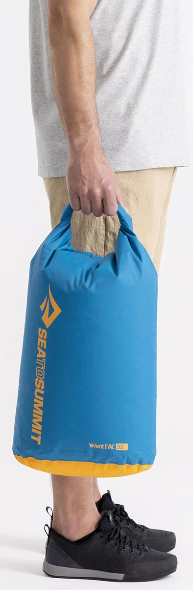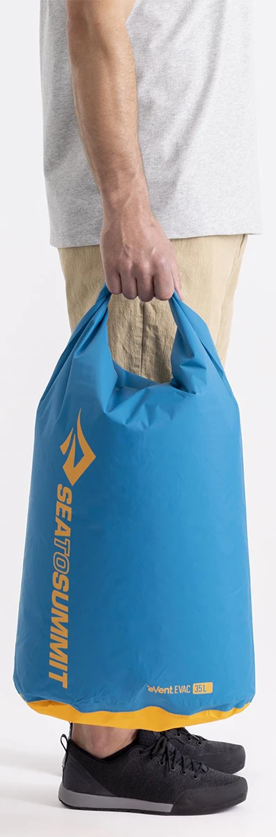 Sea to Summit Evac Dry Bag: Praktický kompresní vak, který je perfektní volbou, jak na svých cestách a výletech udržet všechny věci v suchu. Jedná se o výborný způsob, jak skladovat a zmenšit objem vašeho oblečení, nebo spacích pytlů, bez použití popruhu. Věci stačí zabalit, srolovat vak dolů a vytlačit vzduch ven, abyste ušetřili cenné místo v batohu.