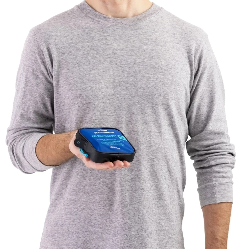 Sea to Summit Folding Bucket: je navržen jako odolný a spolehlivý nosič vody. Je vyroben z pevného 70D nylonu (stejně jako klasický dřez Kitchen Sink), což mu dodává potřebnou tvarovou stálost. Na rozdíl od verze Ultra-Sil je tento model schopen po naplnění stát samostatně na rovném povrchu, což z něj dělá ideální rezervoár vody vedle vašeho vařiče nebo stanu.