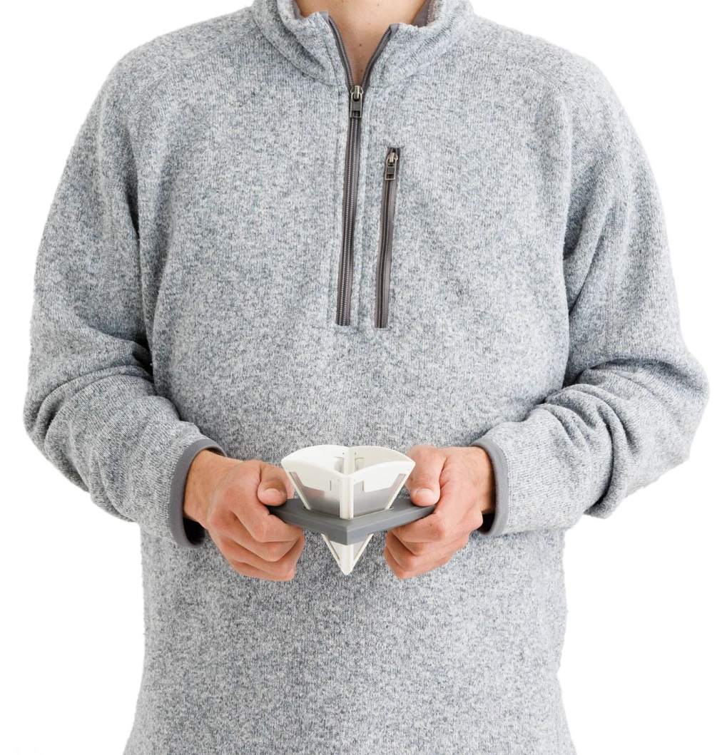 Překapávač během vteřiny složíte do placky, čímž nezabere žádné místo v batohu či zavazadle. Lze ho použít i na sypaný čaj.