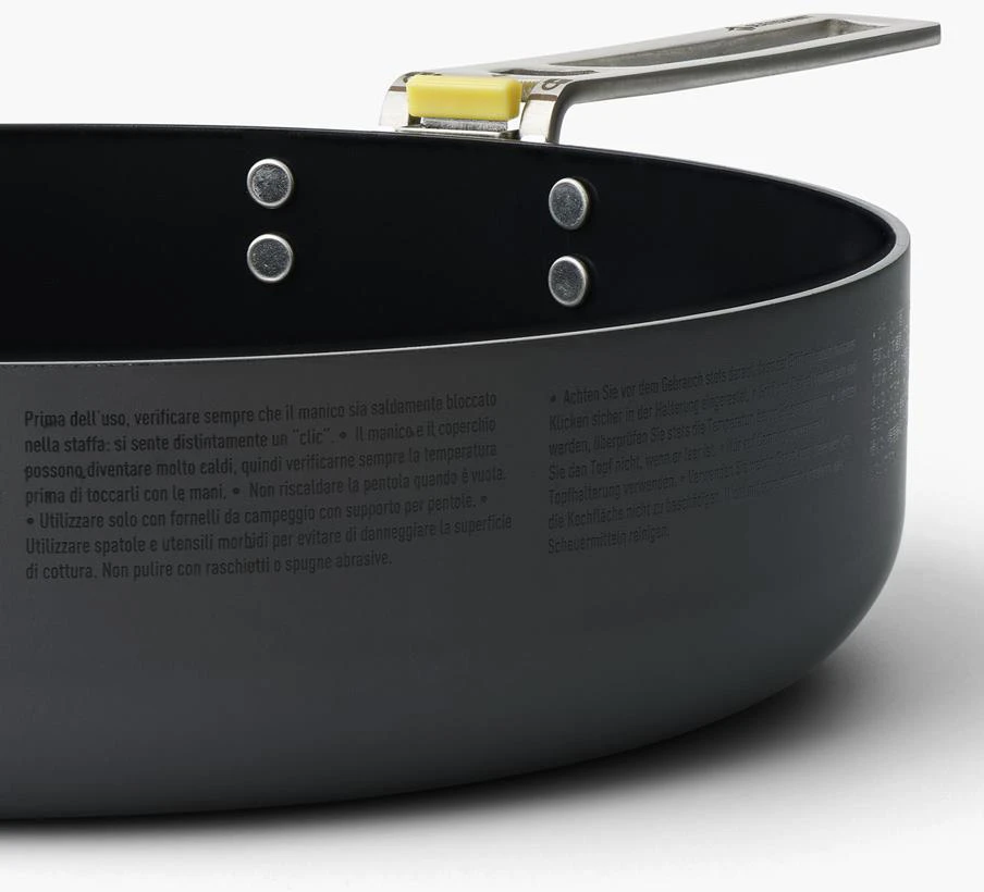 Unikátní odnímatelná rukojeť Click-Safe se jednoduše zajistí bezpečnostním zámkem, nemusíte tak mít strach z přenášení plného kotlíku. Lze ji složit a uzamknout pro úsporu místa a snadnou přepravu.