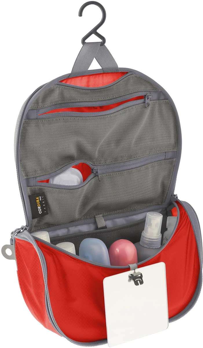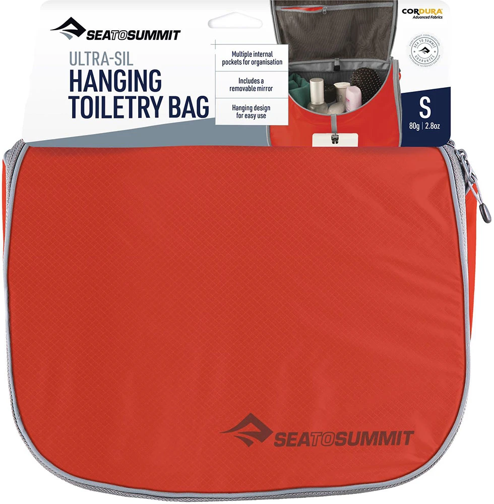 Sea to Summit Hanging Toiletry Bag: Praktická závěsná toaletní taška na cesty a kempování. Díky jednoduchému uspořádání uvnitř tašky, budete mít obsah vždy dobře viditelný a snadno přístupný. Uvnitř najdete hned několik přihrádek ze síťoviny, a praktické kapsy na zip. Použitý materiál Ultra-Sil je voděodolný, lehký a zároveň velice pevný. Součástí je praktické poutko na zavěšení, a malé zrcátko odolné proti rozbití.
