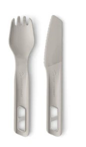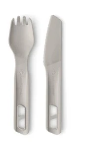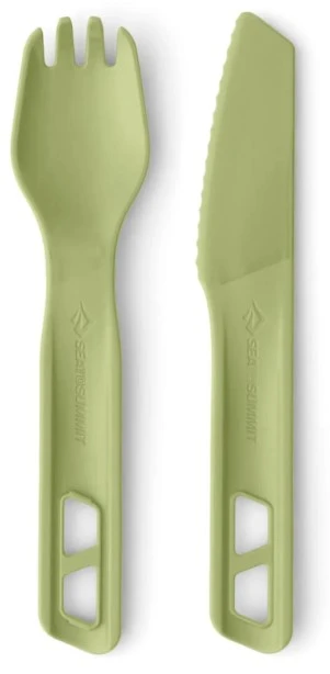 Sea to Summit Horizon Cutlery Set - 2 Piece: Zapomeňte na lámavé plastové vidličky nebo těžké kovové sady. Horizon Cutlery Set je vyroben ze stejného high-tech materiálu jako zbytek řady – polypropylenu vyztuženého skelnými vlákny. Výsledkem je sada, která je lehčí než hliník, ale dostatečně pevná na to, aby si poradila i s tužším masem nebo hustou kaší.