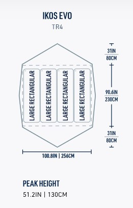 Sea to Summit Ikos Evo Tent TR4: Ikos Evo 4 je skutečným „palácem“ mezi stany. Zatímco běžné stany pro čtyři osoby bývají buď obrovské a těžké rodinné hangáry, nebo naopak stísněné kopule, Ikos využívá technologii Tension Ridge™ k vytvoření vertikálních stěn. To znamená, že i čtyři dospělí lidé mají dostatek místa v úrovni ramen a hlavy, což zásadně zvyšuje komfort při dlouhých večerech nebo špatném počasí.