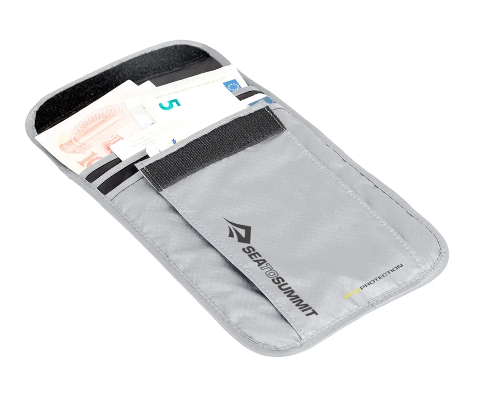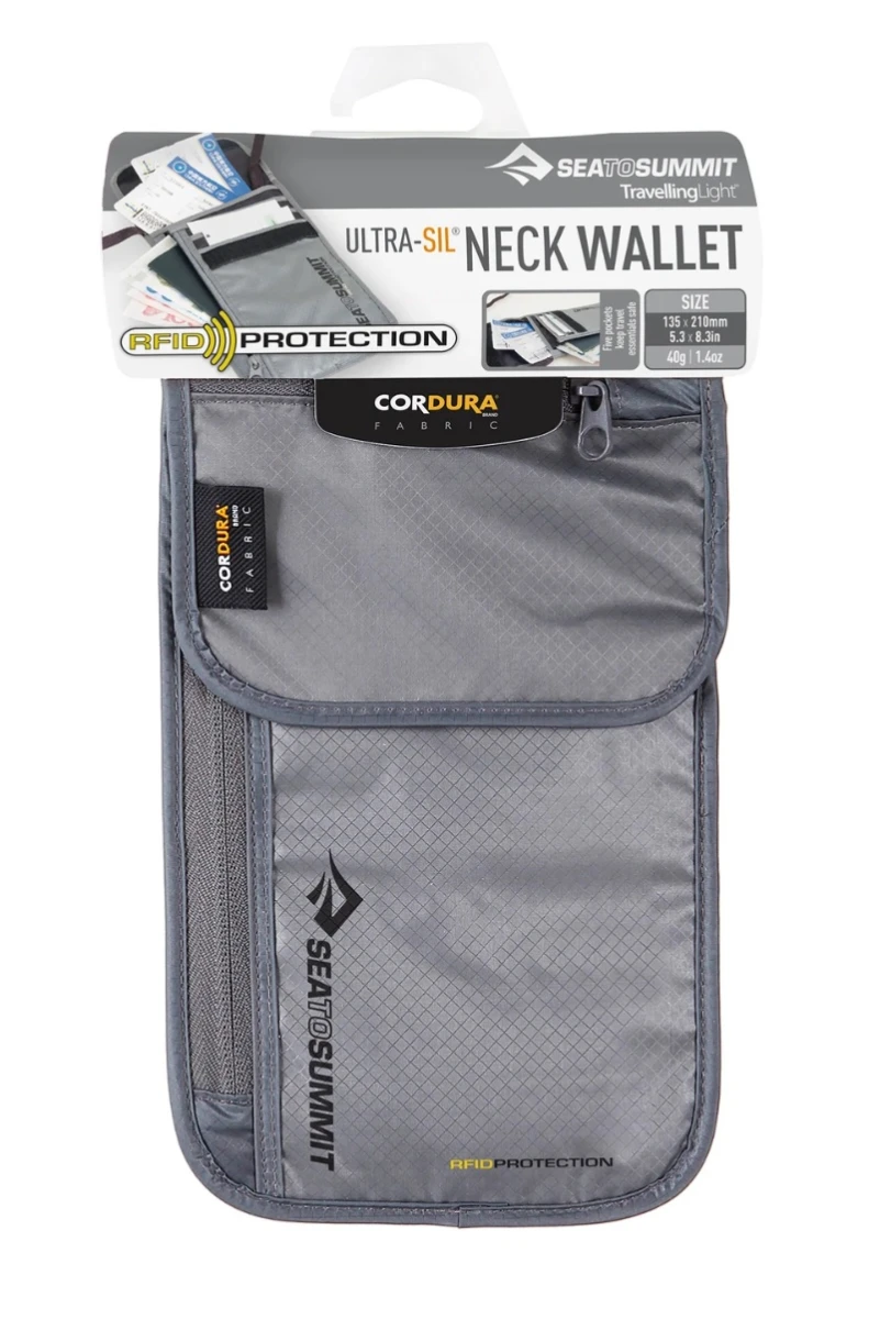Sea to Summit Neck Wallet RFID: Peněženka na krk z lehkého, vodoodpudivého a odolného materiálu Ultra-Sil a silné 3D síťoviny. Pohodlně se nosí a lehce ji schováte pod oblečení, abyste zabránili jejímu odcizení. Kapsička disponuje přihrádkami na kreditní karty a nastavitelným poutkem na krk. Její stěny jsou vylepšené technologií RFID, která zabraňuje nežádanému načtení vaší kreditní karty, a odcizení jejich citlivých údajů.
