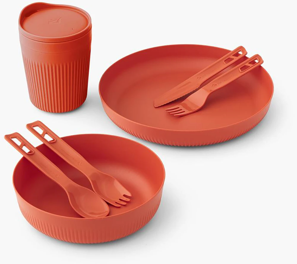 Sea to Summit Passage Dinnerware Set [1P] [7 Piece] - sada kempingového nádobí pro jednu osobu. Skládá se z talíře, misky, hrnku a příborů. Nádobí je lehké a odolné, lze použít do mikrovlnné trouby i myčky. Má žebrované stěny pro zvýšenou ochranu před horkem a chladem, což zajistí bezpečný a pohodlný úchop.