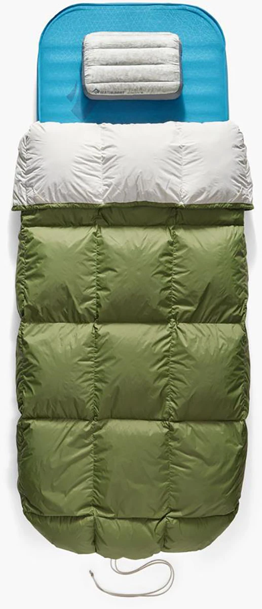 Když teplota naopak klesá lze stahovací šňůru pevně přitáhnout a vytvořit tak kapsu pro nohy, přikrývka navíc disponuje systémem popruhu a patentního knoflíku, který slouží k připevnění karimatky k přikrývce, čímž se minimalizují tepelné ztráty.