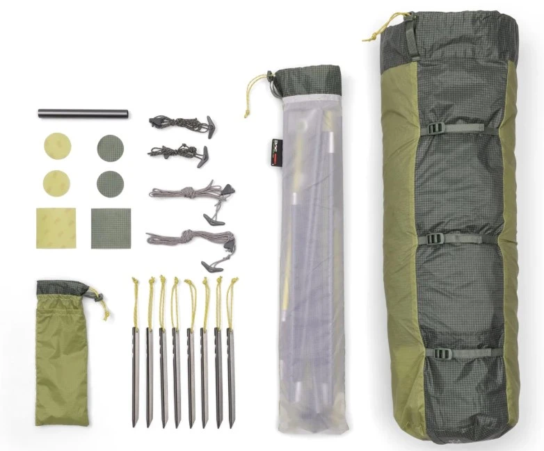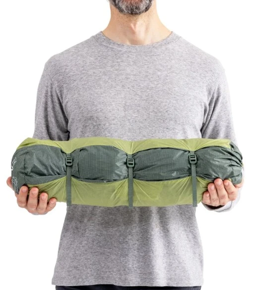 FairShare Storage System: Stan je sbalen do tří samostatných vaků, takže si váhu mohou partneři spravedlivě rozdělit do batohů.
