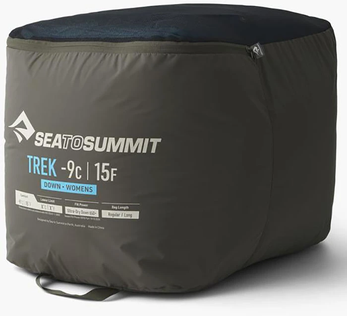 Sea to Summit Trek Women’s -9C: dámský všestranný péřový spacák klasického obdélníkového zúženého střihu.