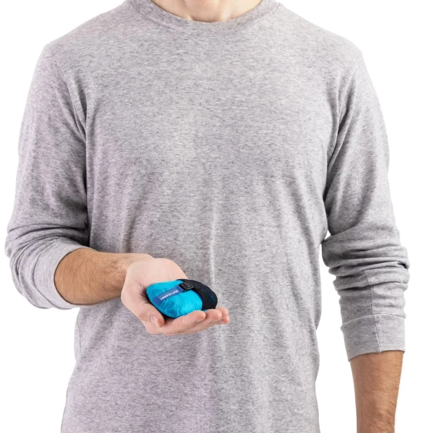 Extrémní sbalitelnost: Ve sbaleném stavu je tak malé, že se vejde do dlaně nebo do nejmenší kapsy batohu. Součástí je miniaturní transportní pytlík.