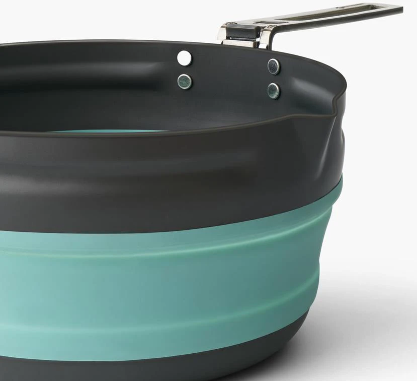 Sea to Summit Frontier UL Collapsible Pouring Pot 2,2 l - skládací silikonový hrnec, je zajímavým řešením, pokud potřebujete ušetřit v batohu místo. Je vyrobený s odolného silikonu s dnem z tvrzeného hliníku.