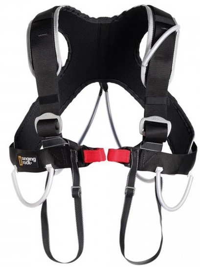 Singing Rock Aladin Plus – prsní úvazek pro doplnění sedáku při lezení v horách, na písku, prostě tam, kde je možnost dlouhých pádů nebo při lezení s batohem.