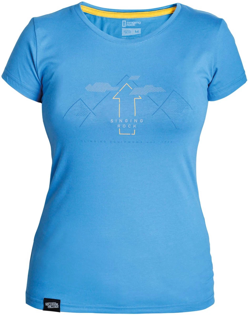 Bavlněné tričko Singing Rock Blue Mountain dámské: je ušité z kvalitní bavlny doplněné elastanem. Střih je pohodlný. Gramáž je 170 g/m2.