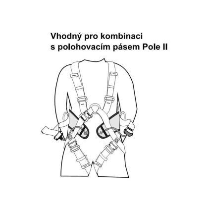 Tento pracovní postroj je vybaven předním i zadním navazovacím bodem a předním bodem pro zachycení pádu. Má možnost polohování.