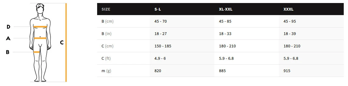 Dvě velikosti pokrývají rozsah 140–210 cm