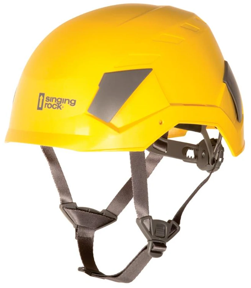 Singing Rock Flash Industry : je určená pro práce ve výškách a arboristiku. Má certifikát EN 397 pro využití přilby pro práci ve výškách. Velikost je nastavitelná kolečkem v rozmezí 53-63 cm. Vnitřní materiál je tvořen popruhy. Vnější materiál je ABS skořepina.