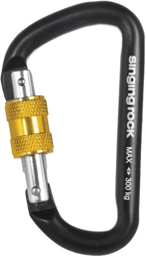 Singing Rock Mini D SC: je pomocná šroubovací karabina z duralu. Je vhodná pro výškové práce, kde na karabinu zavěsíte štětec, šroubovák nebo jiné vybavení aby vám nespadlo.
